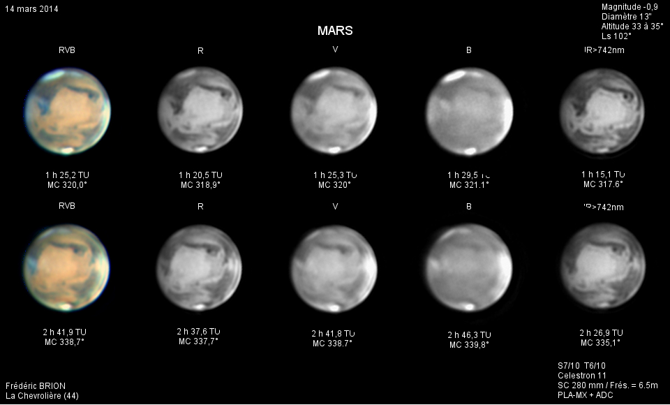 - Paramètres de prise de vue : Films AVI réalisés avec filtres RVB et IR 742 astronomik + W47 Meade + UV Astrodon