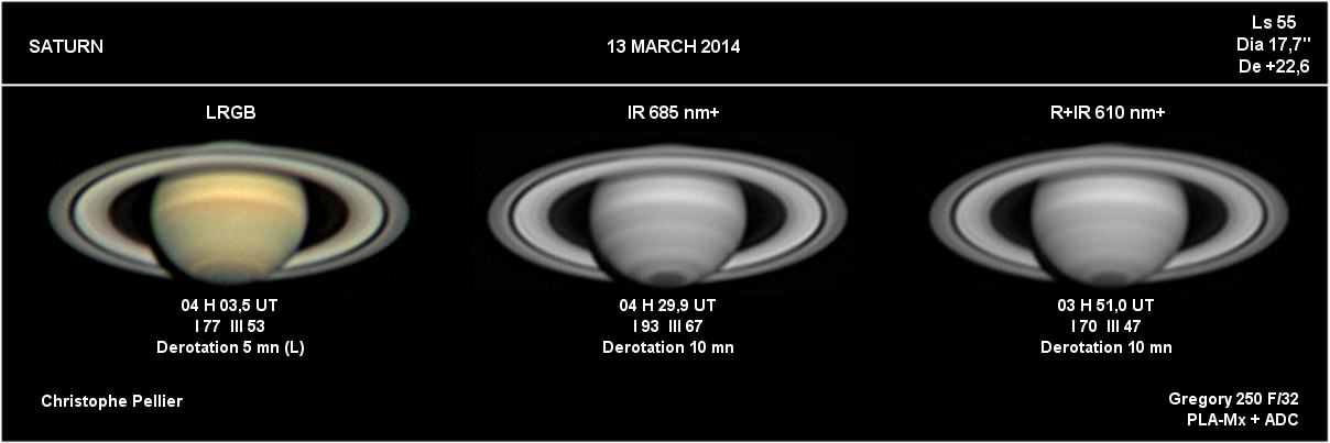 - Paramètres de prise de vue : Films SER réalisés avec filtres LRVB astronomik + RG610 Baader et correcteur de dispersion atmosphérique