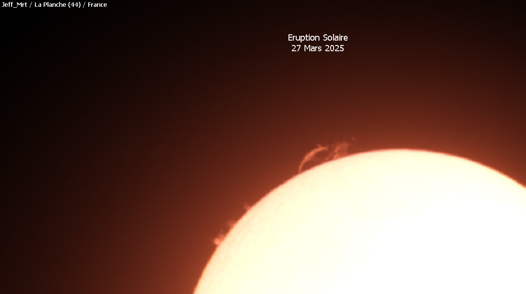 - Instrument et combinaison optique utilisée : Caméra vidéo PLA-Mx au foyer d'une lunette Lunt D=60mm F=500mm avec Barlow 2.5x Télévue (Frésultant : 1,25 m)